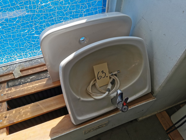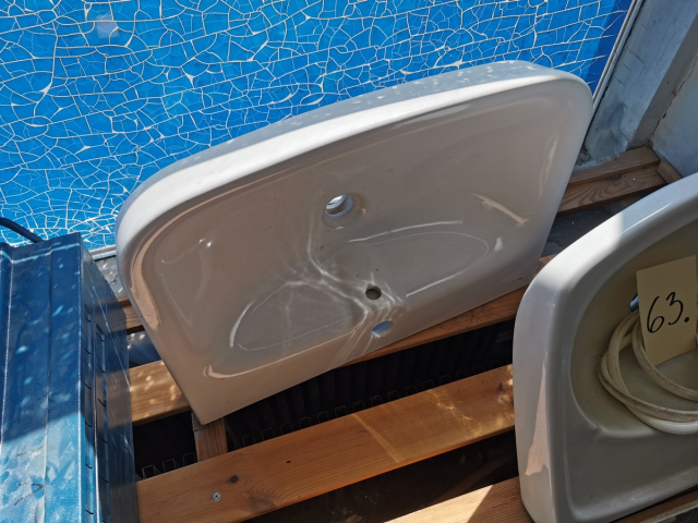 63. Pesuallas, lavuaari, 2 kpl, hana ja käsisuihku.