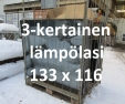 Lämpölasi / Ikkuna 3-kertainen lämpölasi 116 x 133 cm, erä 3 kpl, käytetty; Lohja