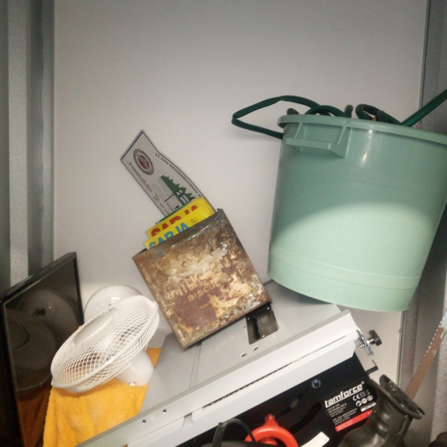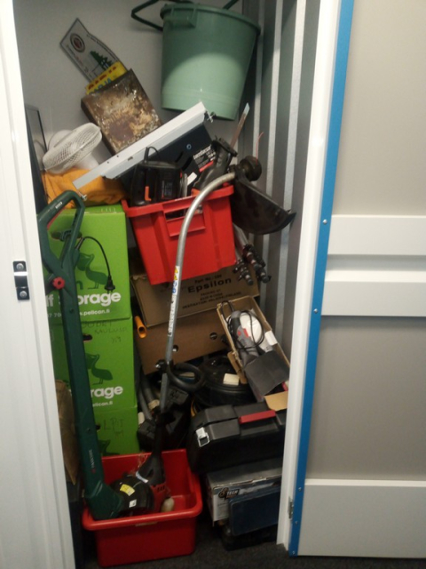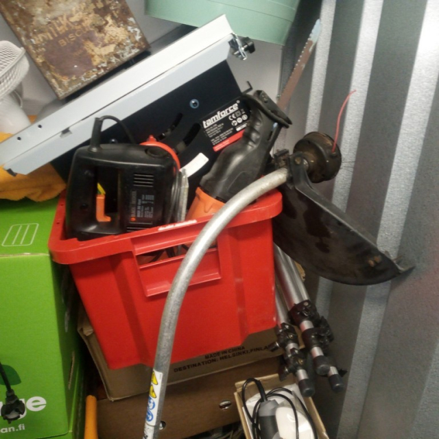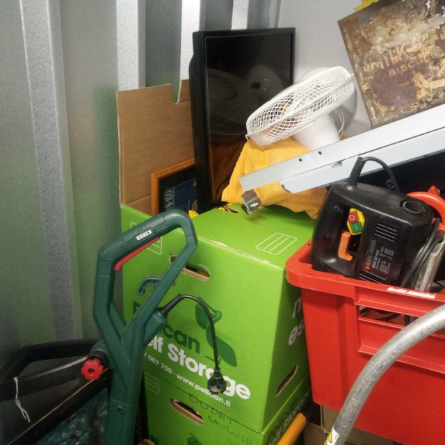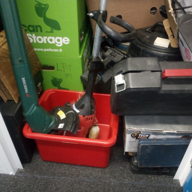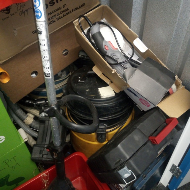 Myydään huutokaupalla kuvassa näkyvän varaston sisältö, vuokranantajan / haltijan lukuun.