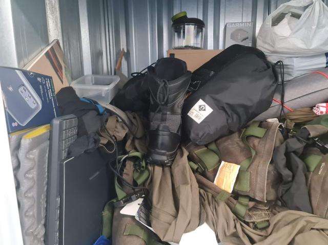 Myydään huutokaupalla kuvassa näkyvän varaston sisältö, vuokranantajan / haltijan lukuun.