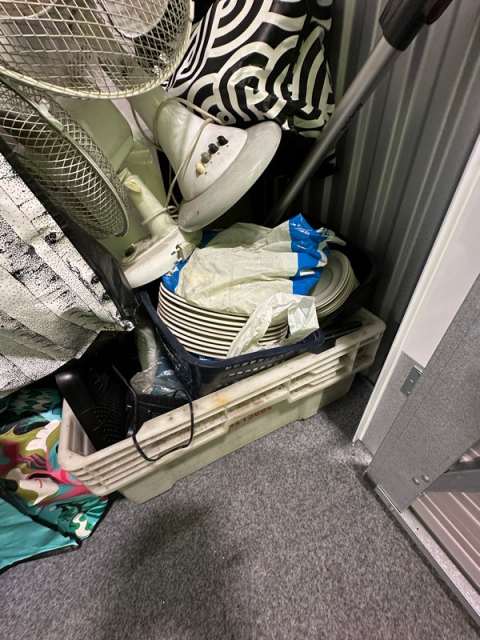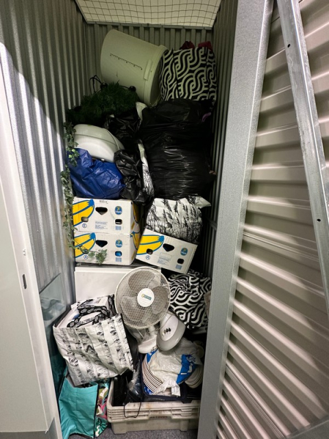 Myydään huutokaupalla kuvassa näkyvän varaston sisältö, vuokranantajan / haltijan lukuun.