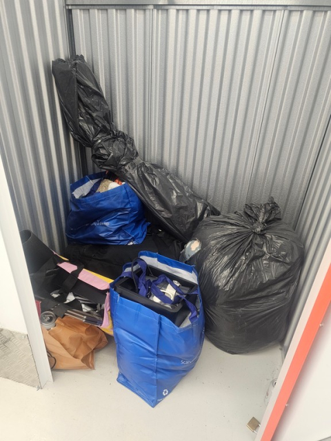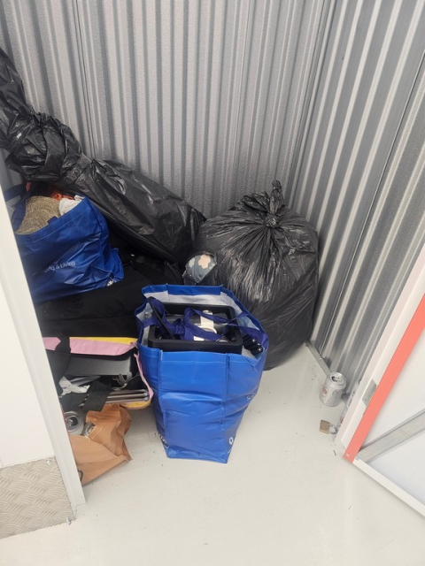 Myydään huutokaupalla kuvassa näkyvän varaston sisältö, vuokranantajan / haltijan lukuun.