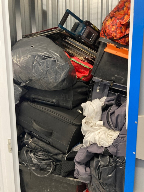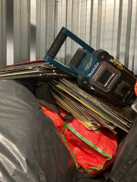 Myydään huutokaupalla kuvassa näkyvän varaston sisältö, vuokranantajan / haltijan lukuun.