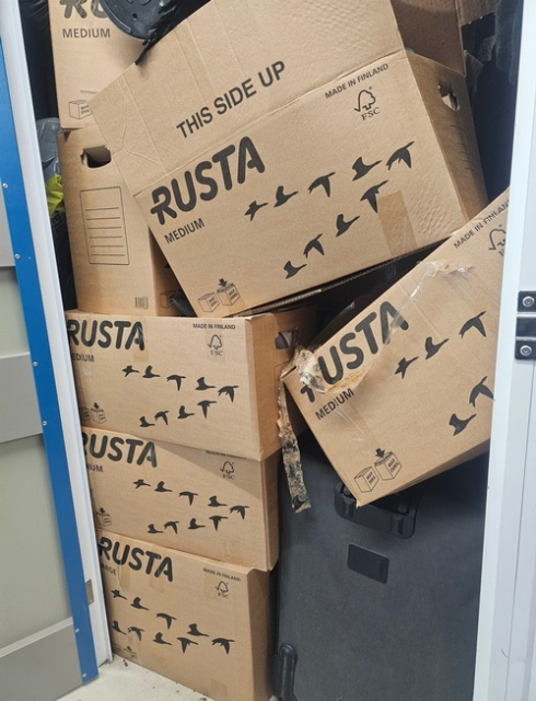 Myydään huutokaupalla kuvassa näkyvän varaston sisältö, vuokranantajan / haltijan lukuun.