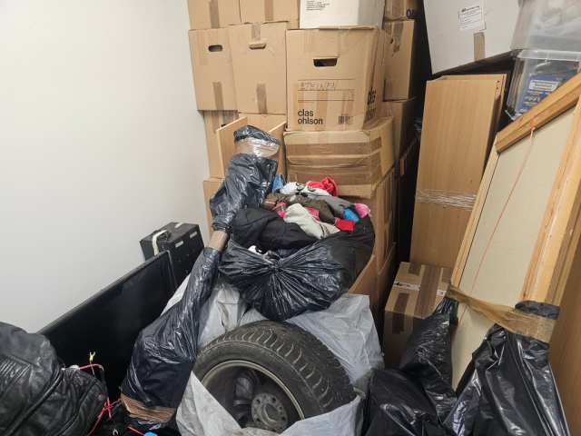 Myydään huutokaupalla kuvassa näkyvän varaston sisältö, vuokranantajan / haltijan lukuun.
