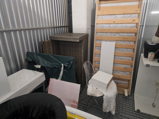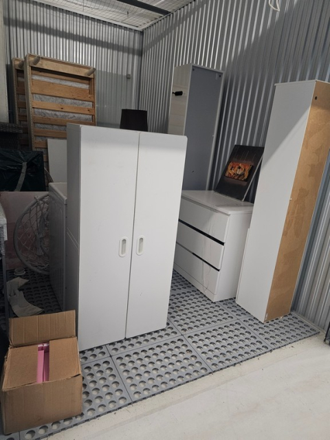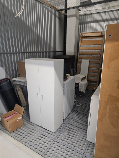 Myydään huutokaupalla kuvassa näkyvän varaston sisältö, vuokranantajan / haltijan lukuun.