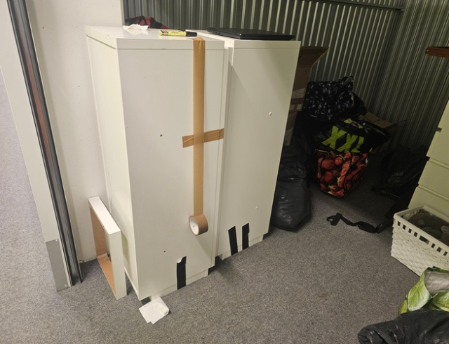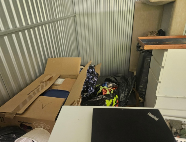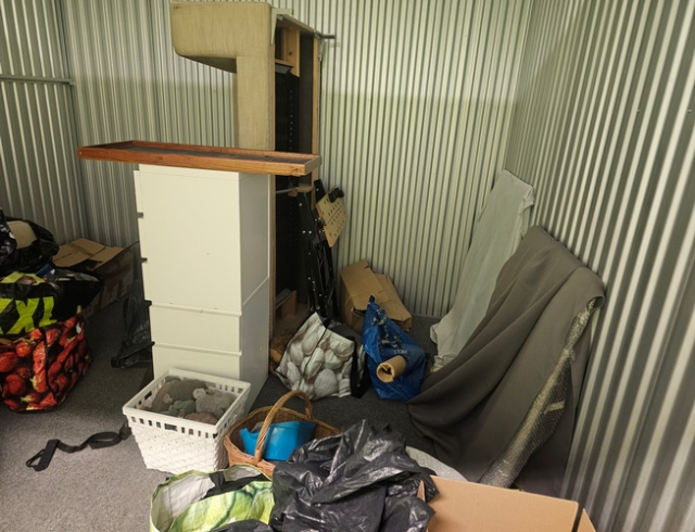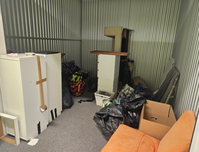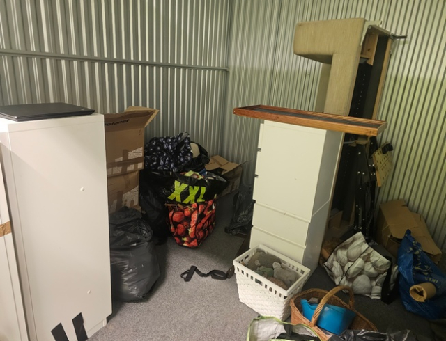 Myydään huutokaupalla kuvassa näkyvän varaston sisältö, vuokranantajan / haltijan lukuun.