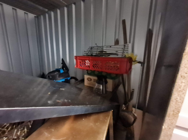 Myydään huutokaupalla kuvassa näkyvän varaston sisältö, vuokranantajan / haltijan lukuun.