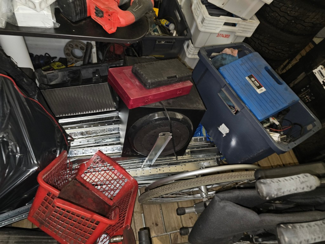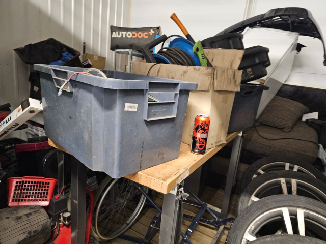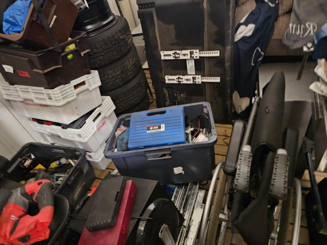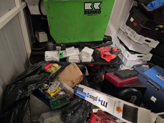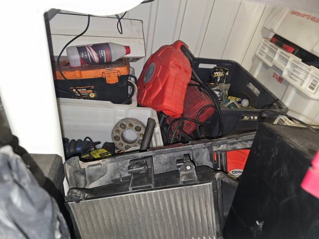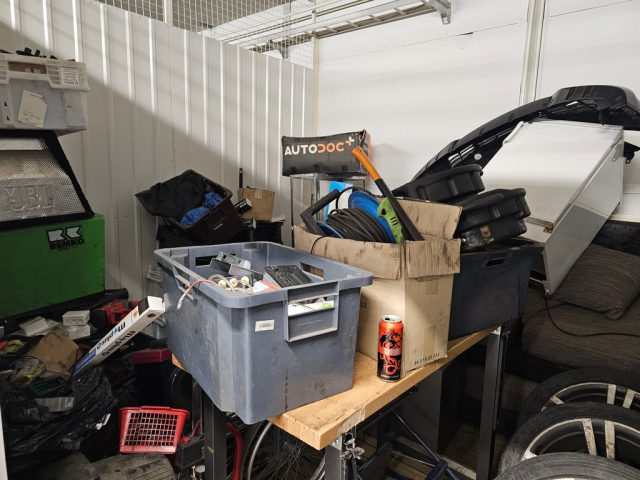 Myydään huutokaupalla kuvassa näkyvän varaston sisältö, vuokranantajan / haltijan lukuun.