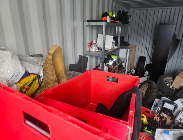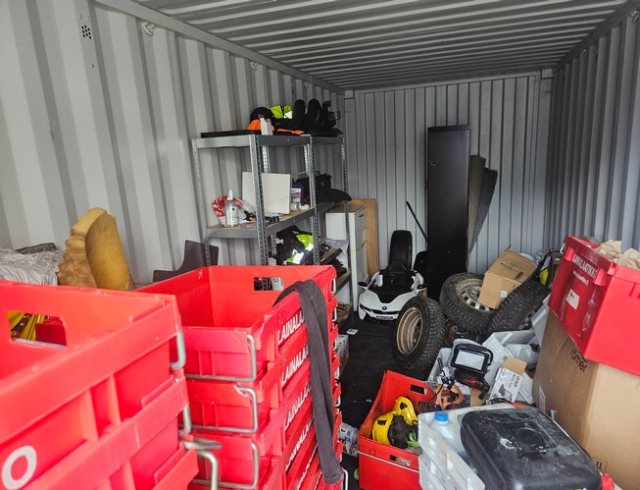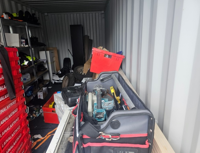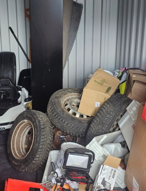 Myydään huutokaupalla kuvassa näkyvän varaston sisältö, vuokranantajan / haltijan lukuun.