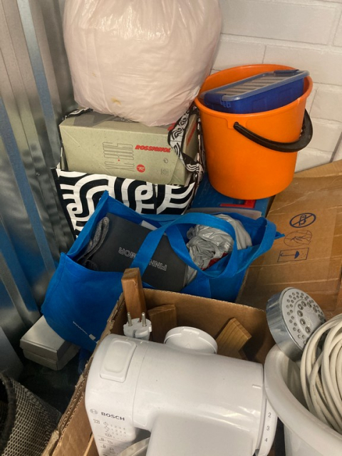 Myydään huutokaupalla kuvassa näkyvän varaston sisältö, vuokranantajan / haltijan lukuun.