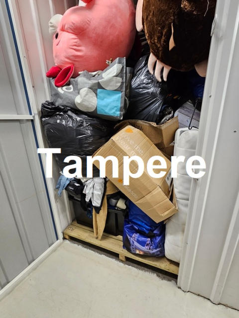 Myydään huutokaupalla kuvassa näkyvän varaston sisältö, vuokranantajan / haltijan lukuun.