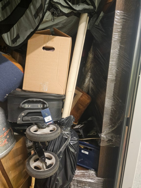 Myydään huutokaupalla kuvassa näkyvän varaston sisältö, vuokranantajan / haltijan lukuun.