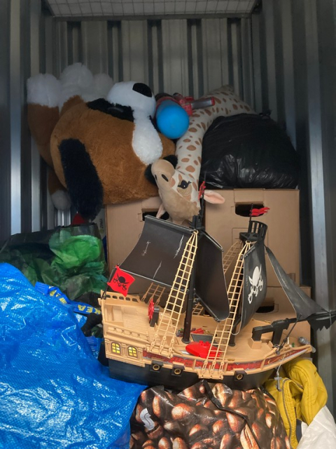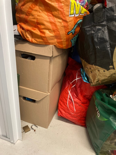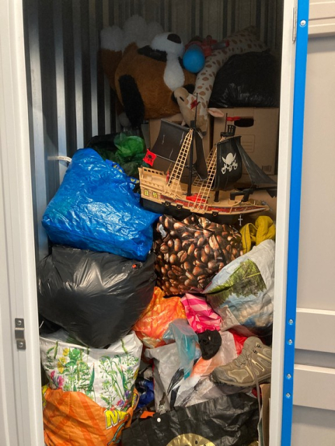 Myydään huutokaupalla kuvassa näkyvän varaston sisältö, vuokranantajan / haltijan lukuun.
