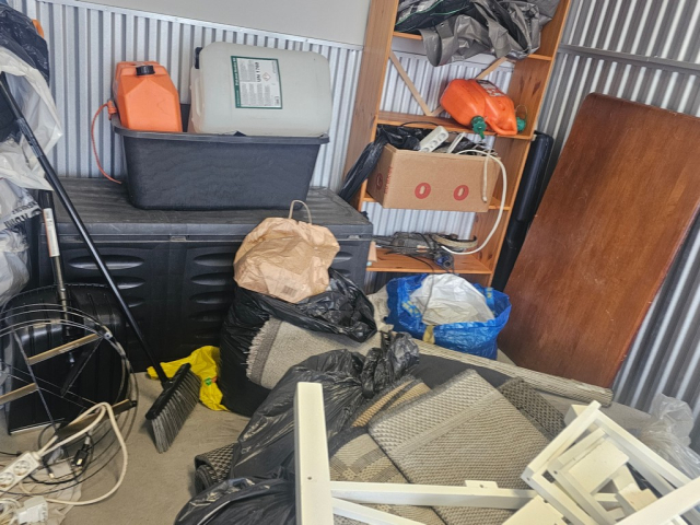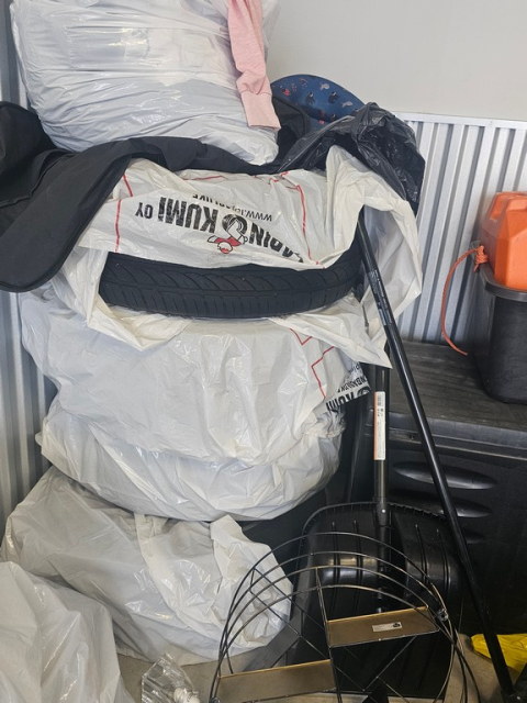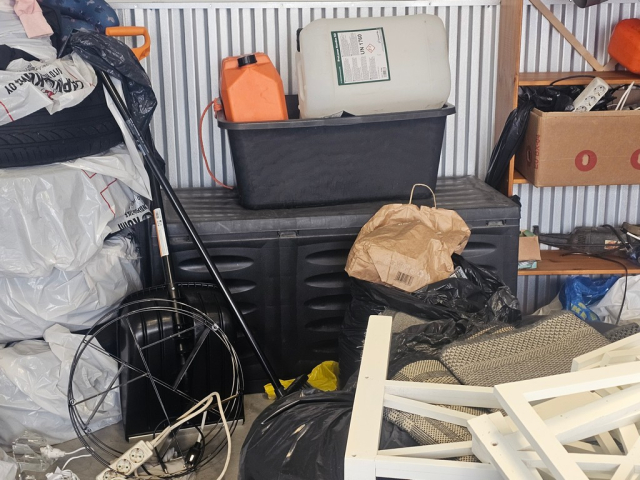 Myydään huutokaupalla kuvassa näkyvän varaston sisältö, vuokranantajan / haltijan lukuun.
