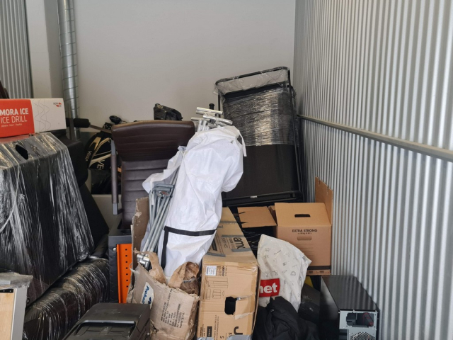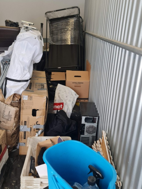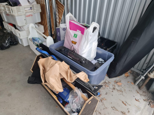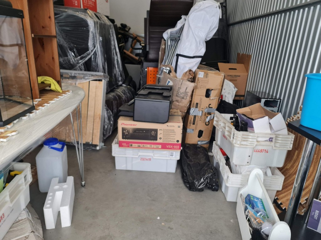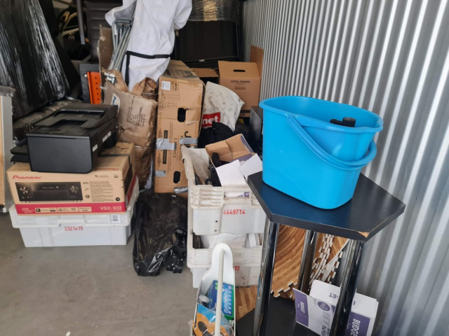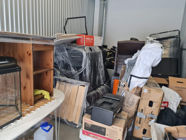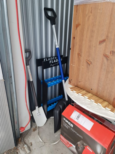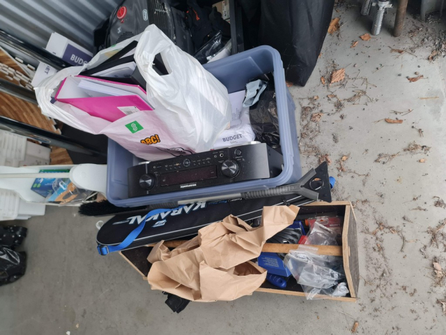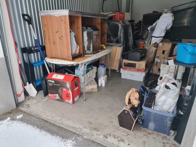 Myydään huutokaupalla kuvassa näkyvän varaston sisältö, vuokranantajan / haltijan lukuun.