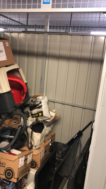 Myydään huutokaupalla kuvassa näkyvän varaston sisältö, vuokranantajan / haltijan lukuun.