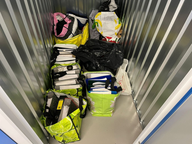 Myydään huutokaupalla kuvassa näkyvän varaston sisältö, vuokranantajan / haltijan lukuun.