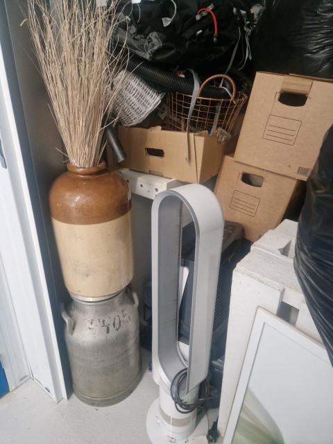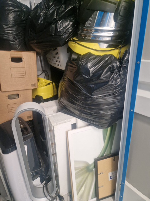 Myydään huutokaupalla kuvassa näkyvän varaston sisältö, vuokranantajan / haltijan lukuun.