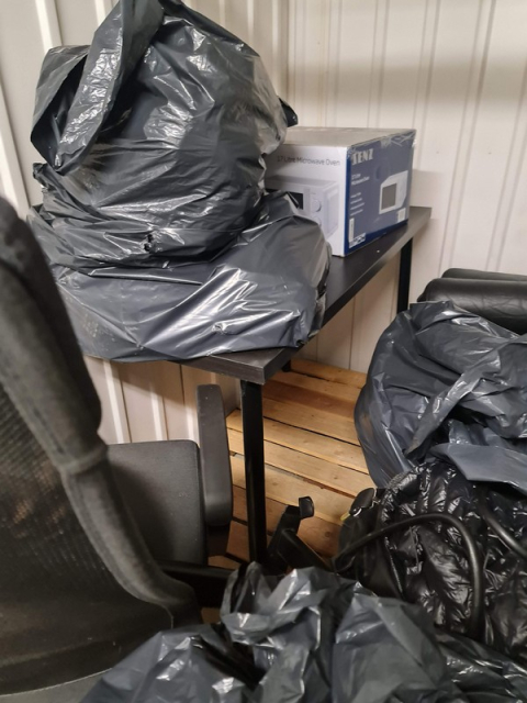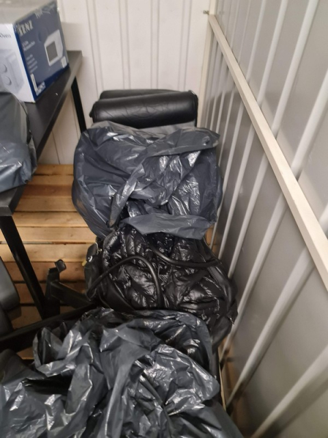 Myydään huutokaupalla kuvassa näkyvän varaston sisältö, vuokranantajan / haltijan lukuun.