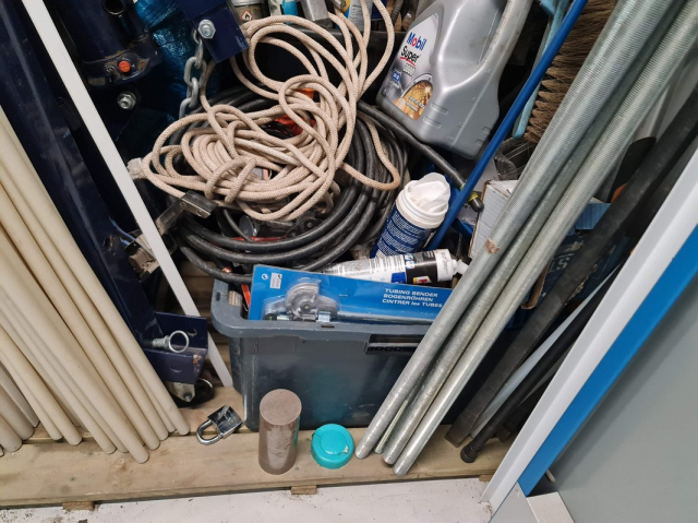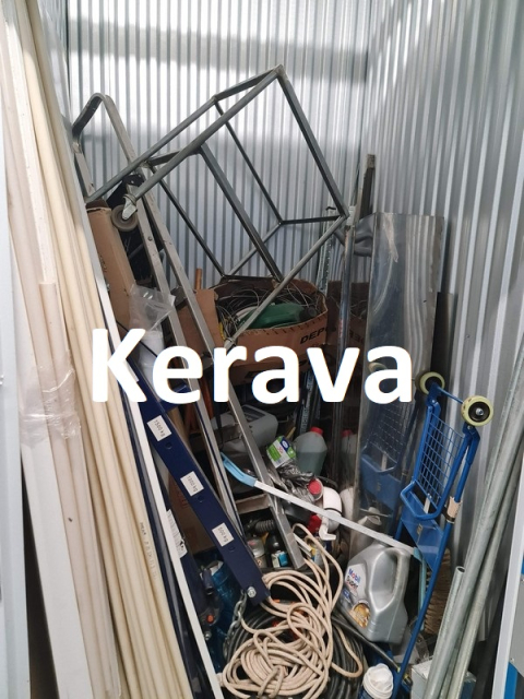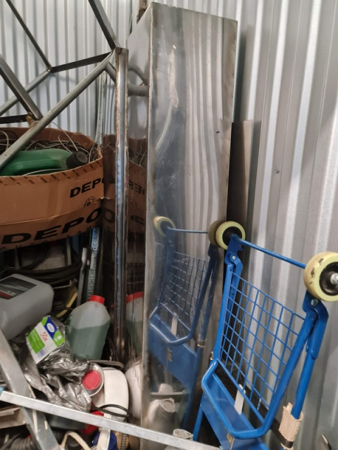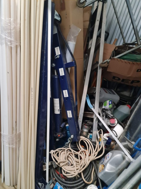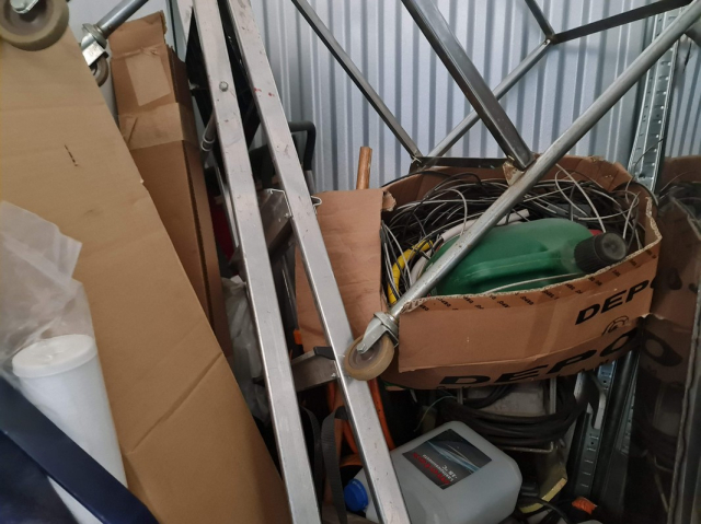 Myydään huutokaupalla kuvassa näkyvän varaston sisältö, vuokranantajan / haltijan lukuun.