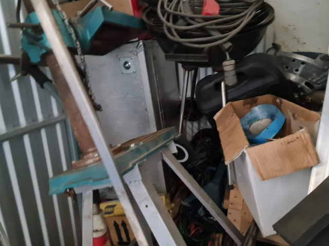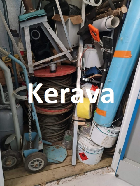 Myydään huutokaupalla kuvassa näkyvän varaston sisältö, vuokranantajan / haltijan lukuun.