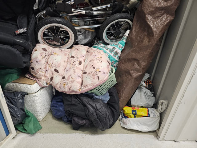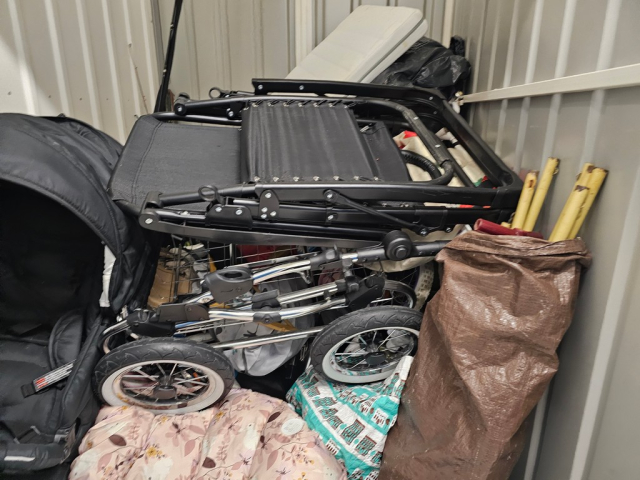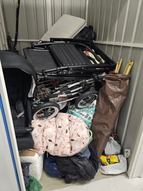 Myydään huutokaupalla kuvassa näkyvän varaston sisältö, vuokranantajan / haltijan lukuun.