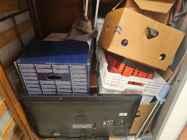 Myydään huutokaupalla kuvassa näkyvän varaston sisältö, vuokranantajan / haltijan lukuun.
