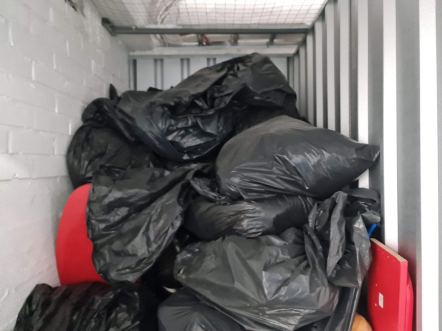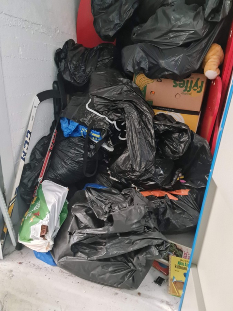Myydään huutokaupalla kuvassa näkyvän varaston sisältö, vuokranantajan / haltijan lukuun.