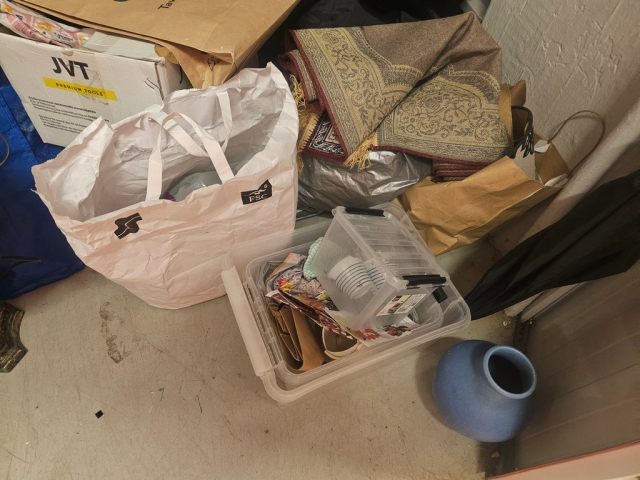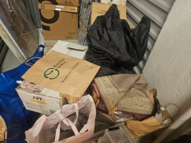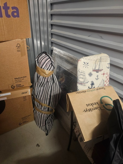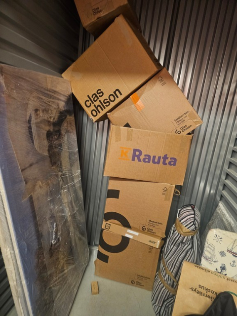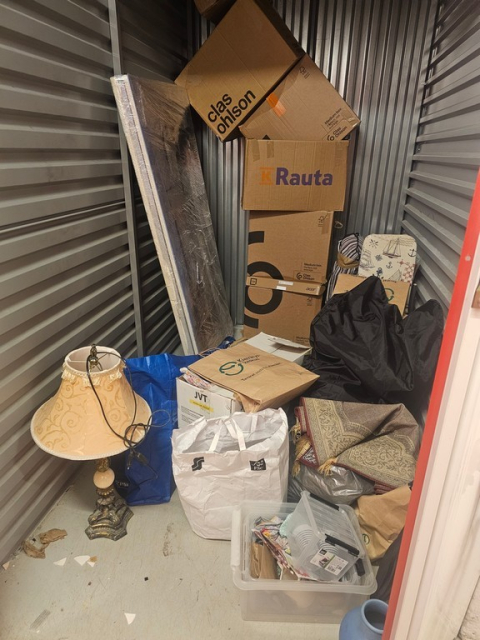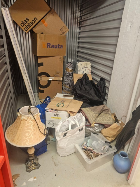 Myydään huutokaupalla kuvassa näkyvän varaston sisältö, vuokranantajan / haltijan lukuun.