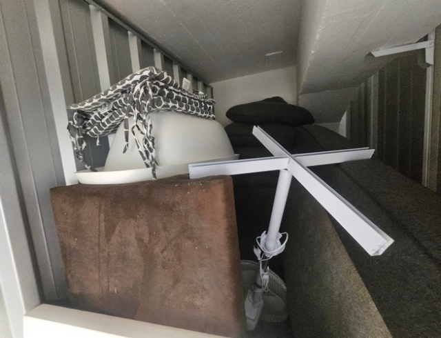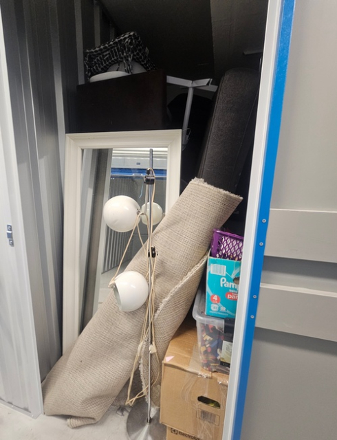 Myydään huutokaupalla kuvassa näkyvän varaston sisältö, vuokranantajan / haltijan lukuun.