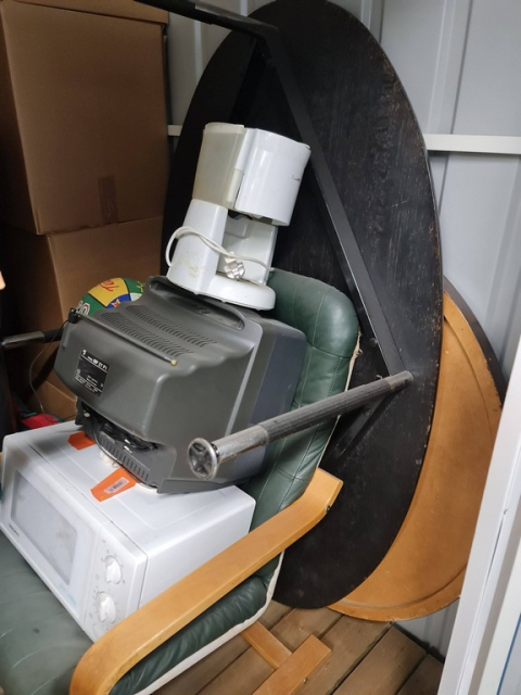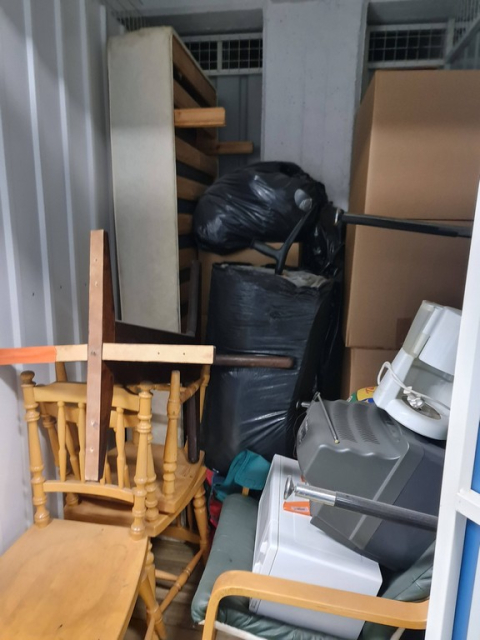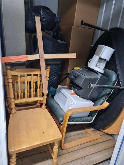Myydään huutokaupalla kuvassa näkyvän varaston sisältö, vuokranantajan / haltijan lukuun.