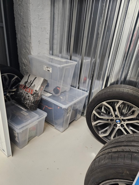 Myydään huutokaupalla kuvassa näkyvän varaston sisältö, vuokranantajan / haltijan lukuun.