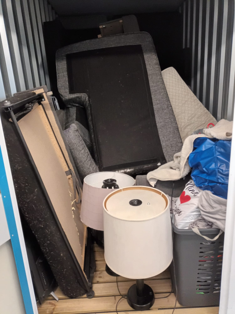 Myydään huutokaupalla kuvassa näkyvän varaston sisältö, vuokranantajan / haltijan lukuun.