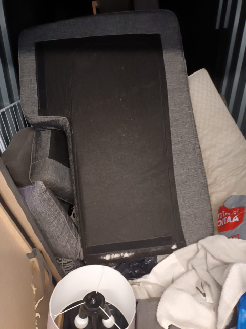 Myydään huutokaupalla kuvassa näkyvän varaston sisältö, vuokranantajan / haltijan lukuun.