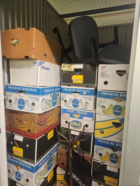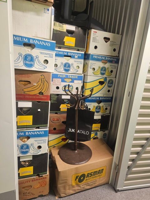 Myydään huutokaupalla kuvassa näkyvän varaston sisältö, vuokranantajan / haltijan lukuun.