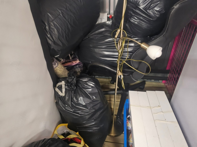 Myydään huutokaupalla kuvassa näkyvän varaston sisältö, vuokranantajan / haltijan lukuun.