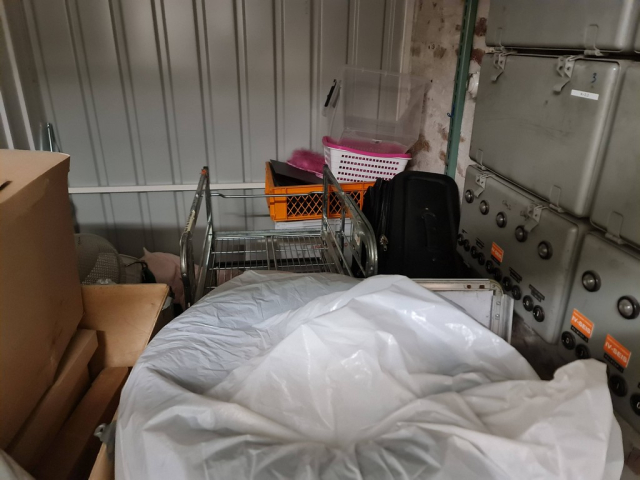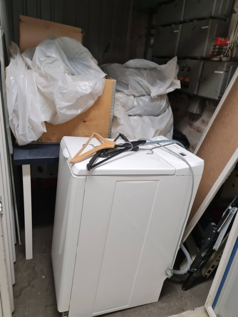 Myydään huutokaupalla kuvassa näkyvän varaston sisältö, vuokranantajan / haltijan lukuun.