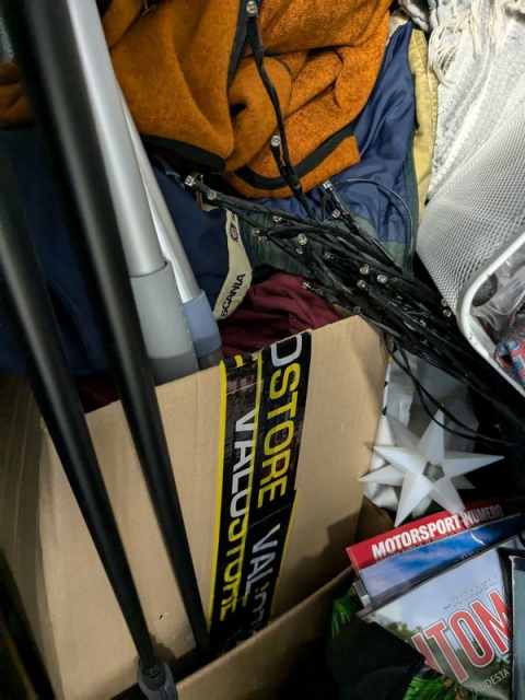 Myydään huutokaupalla kuvassa näkyvän varaston sisältö, vuokranantajan / haltijan lukuun.