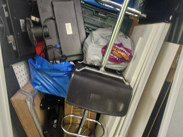 Myydään huutokaupalla kuvassa näkyvän varaston sisältö, vuokranantajan / haltijan lukuun.