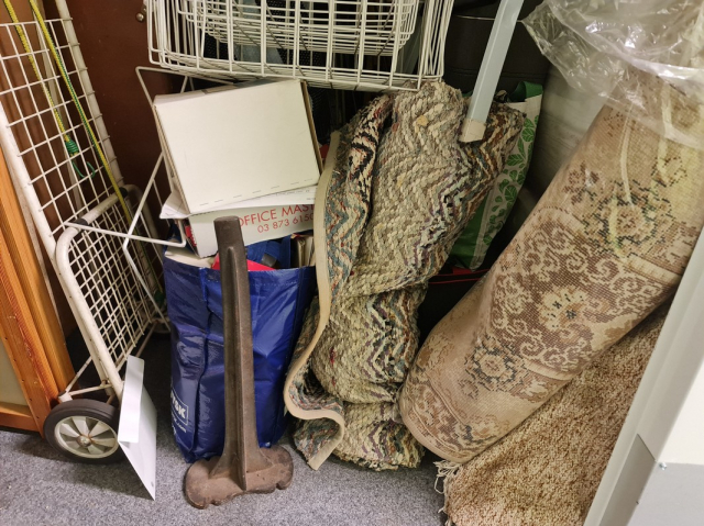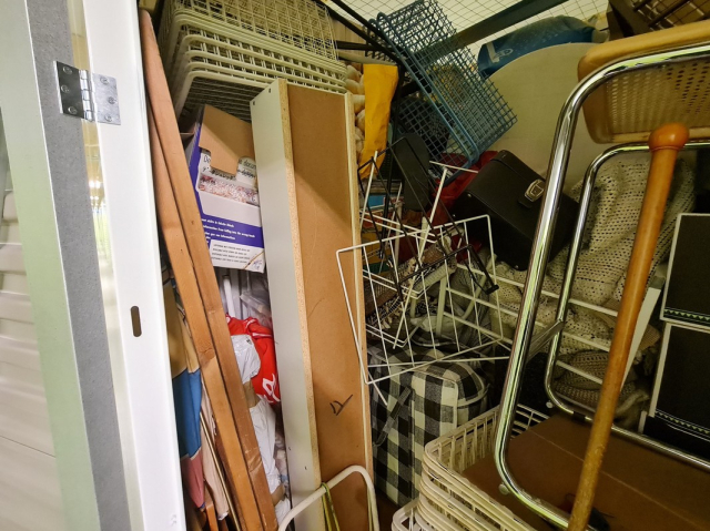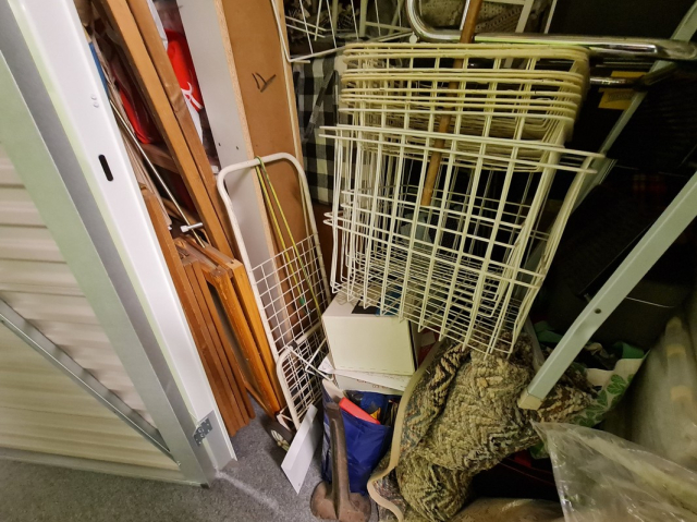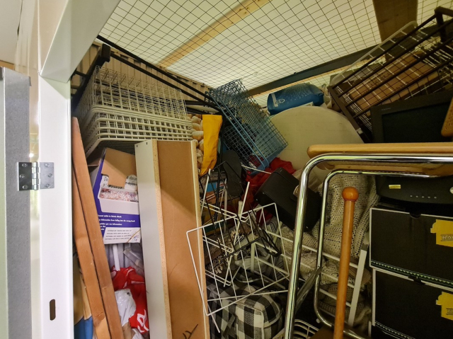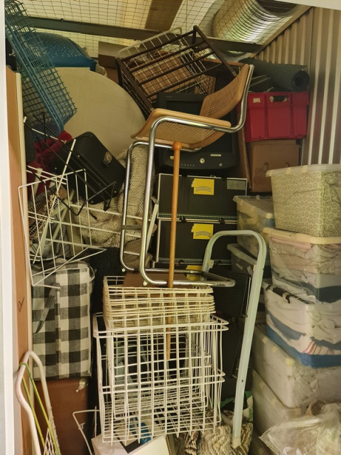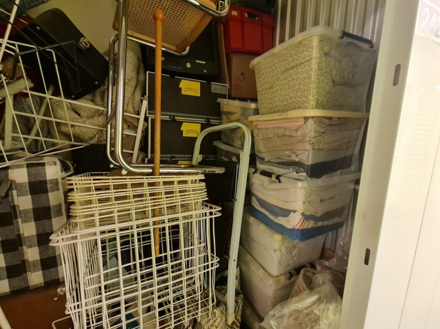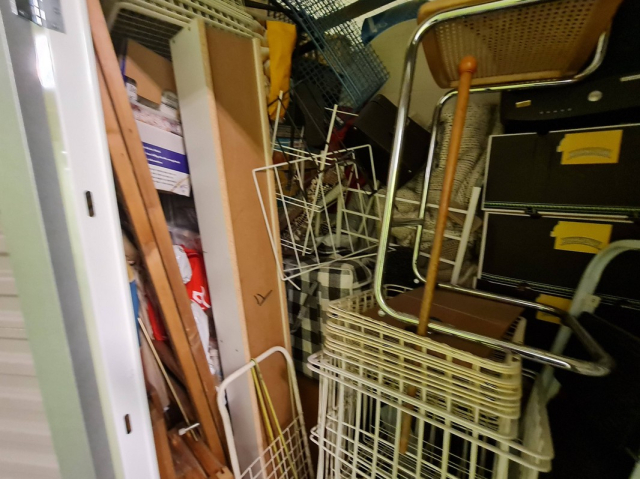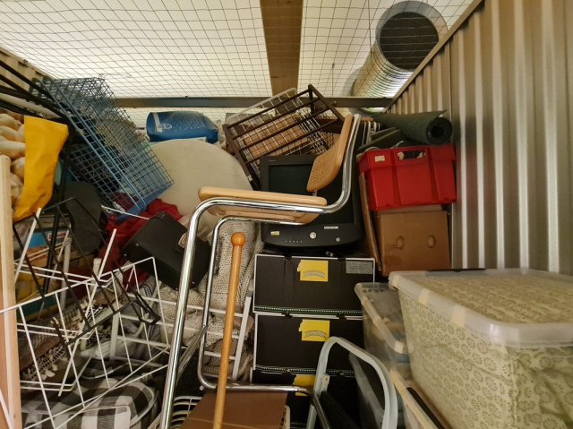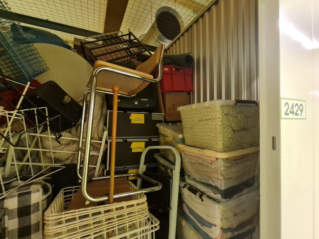 Myydään huutokaupalla kuvassa näkyvän varaston sisältö, vuokranantajan / haltijan lukuun.