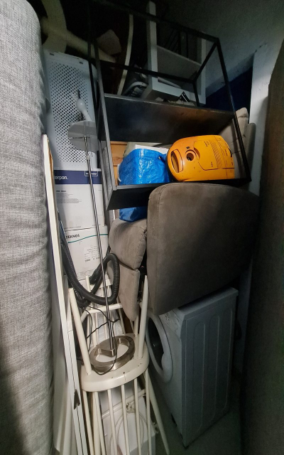Myydään huutokaupalla kuvassa näkyvän varaston sisältö, vuokranantajan / haltijan lukuun.