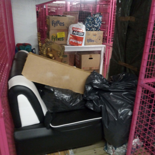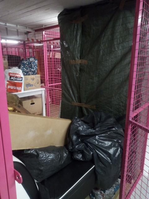 Myydään huutokaupalla kuvassa näkyvän varaston sisältö, vuokranantajan / haltijan lukuun.