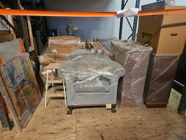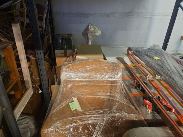 Myydään huutokaupalla kuvassa näkyvän varaston sisältö, vuokranantajan / haltijan lukuun.