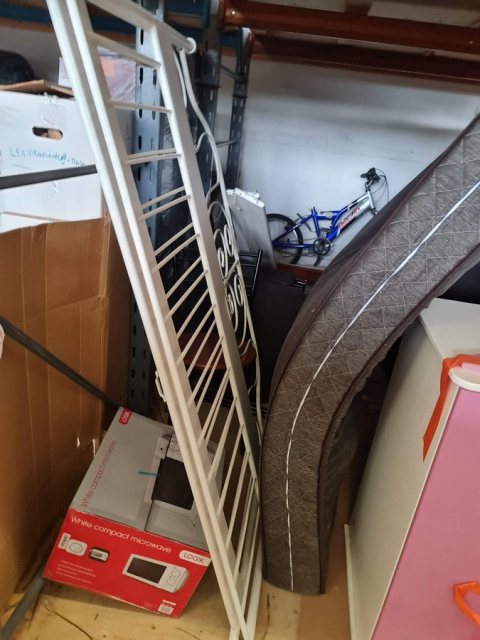 Myydään huutokaupalla kuvassa näkyvän varaston sisältö, vuokranantajan / haltijan lukuun.