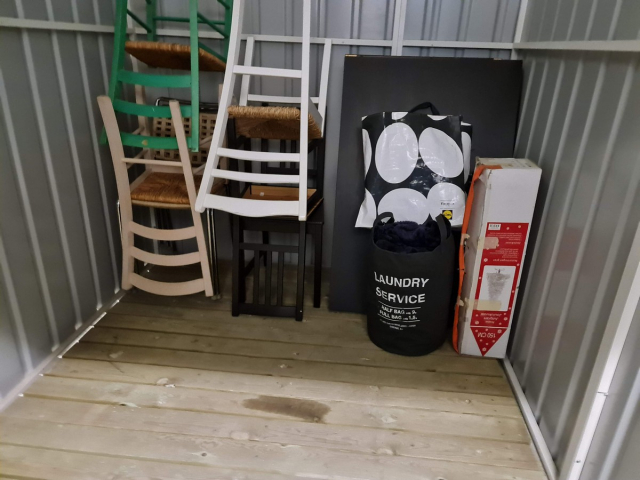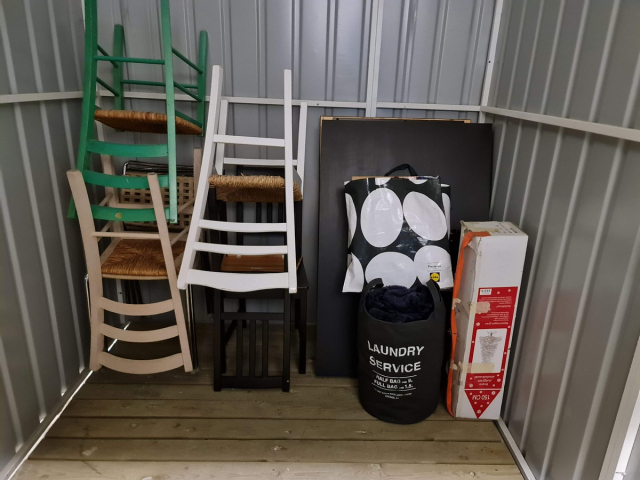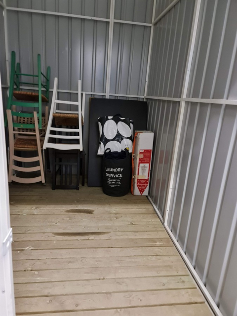 Myydään huutokaupalla kuvassa näkyvän varaston sisältö, vuokranantajan / haltijan lukuun.