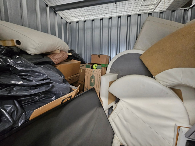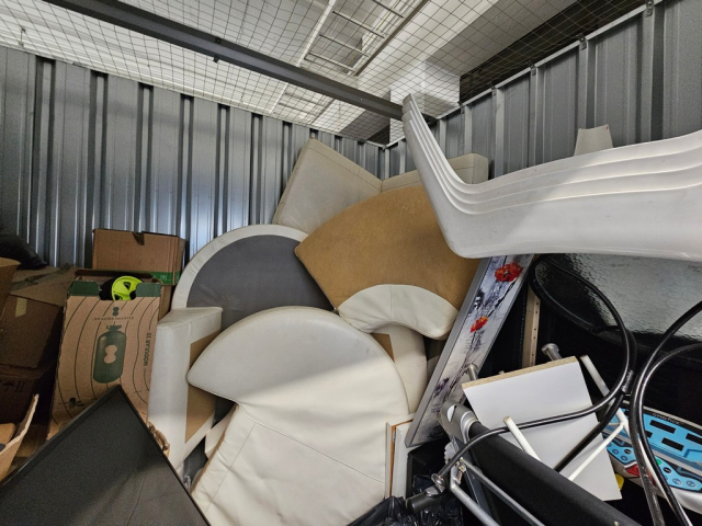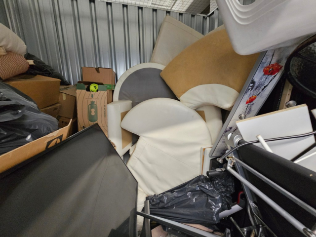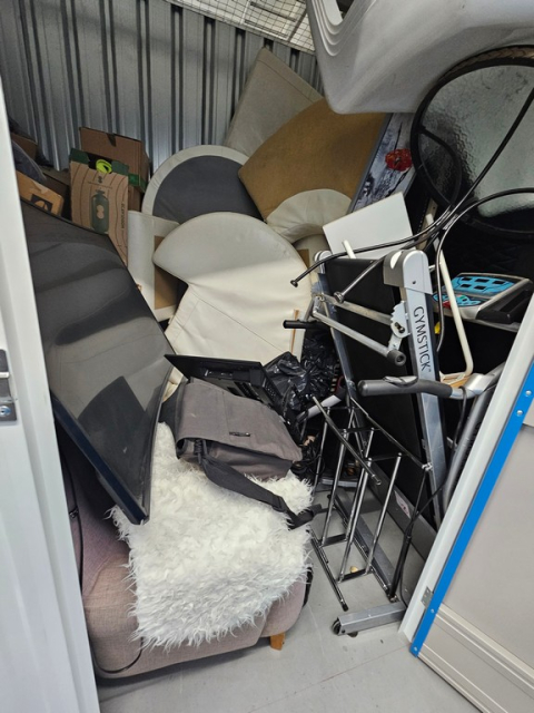 Myydään huutokaupalla kuvassa näkyvän varaston sisältö, vuokranantajan / haltijan lukuun.