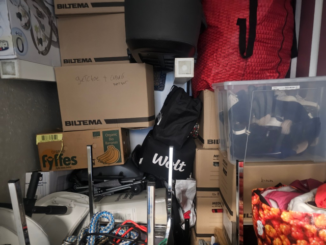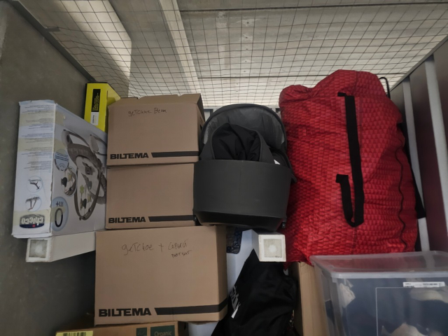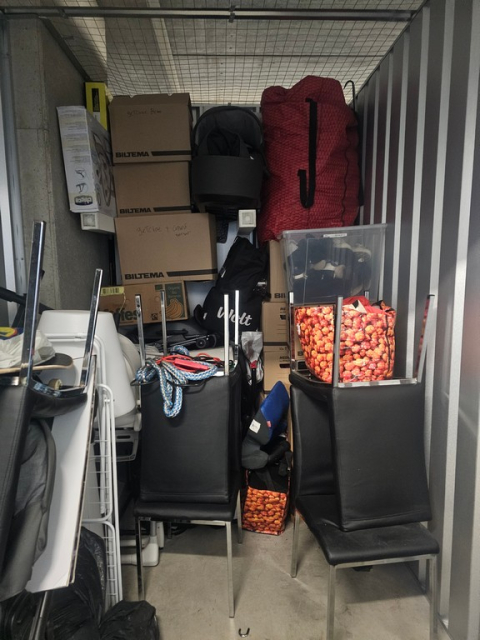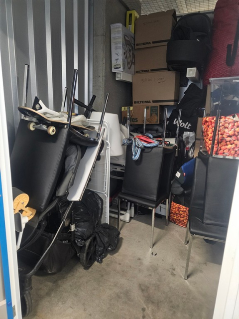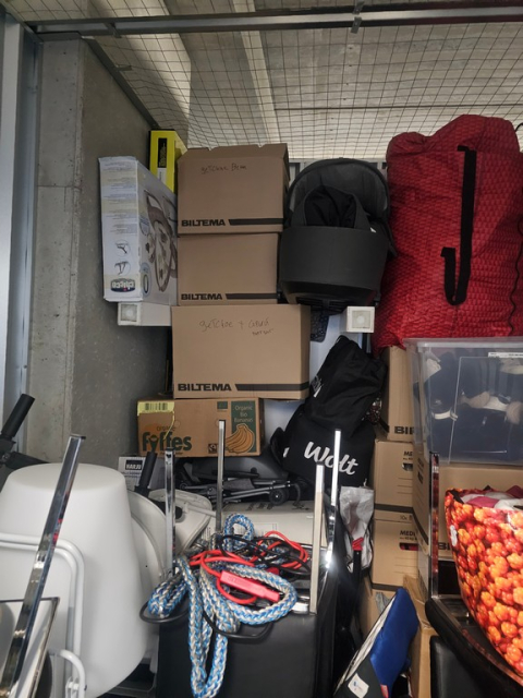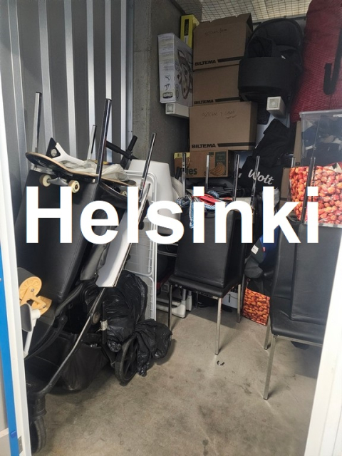 Myydään huutokaupalla kuvassa näkyvän varaston sisältö, vuokranantajan / haltijan lukuun.