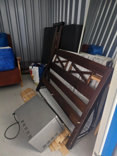 Myydään huutokaupalla kuvassa näkyvän varaston sisältö, vuokranantajan / haltijan lukuun.