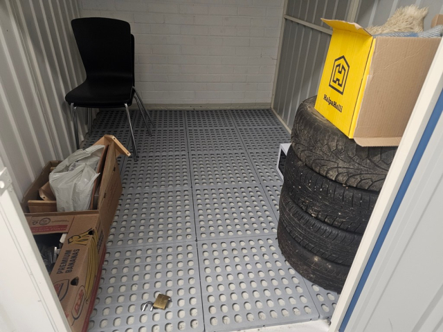 Myydään huutokaupalla kuvassa näkyvän varaston sisältö, vuokranantajan / haltijan lukuun.